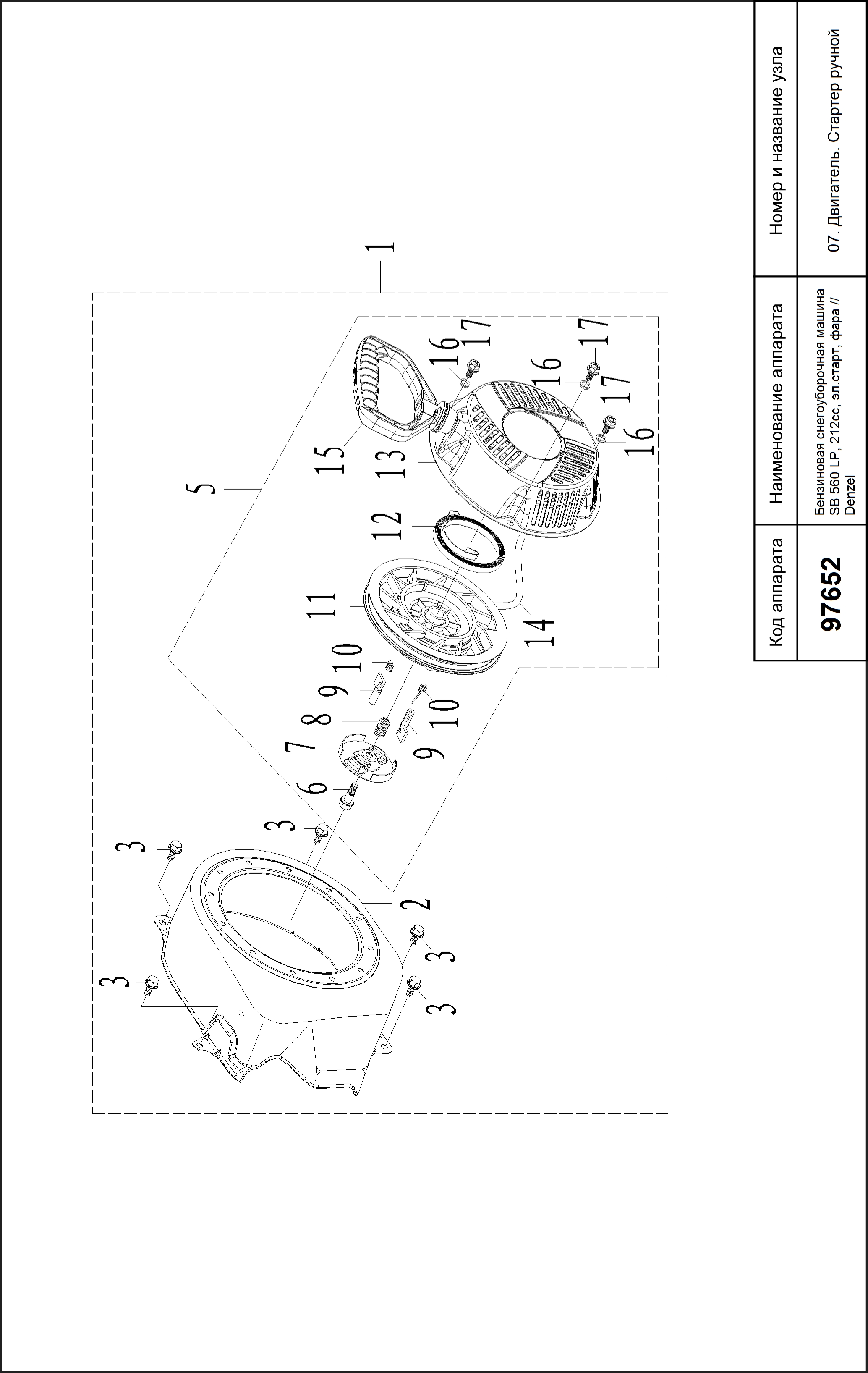 Список запасных частей - 07. Двигатель. Стартер ручной